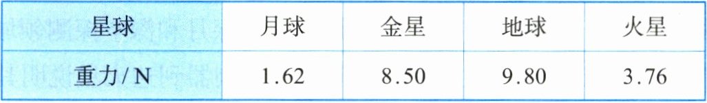 (2)图乙为祝融号火星车的巡航模式图。祝融号总质量为240kg,与火星接触总面积约为$0.24m^2,$若火星车停在火星某水平面探测时,计算火星车对火星表面的压强(已知1kg物体在不同星球上所受重力如下表所示)。