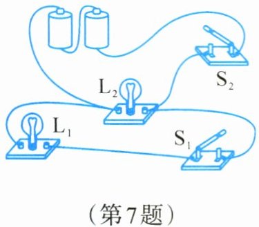 7. 如图所示的电路中,小灯泡$L_1$和$L_2$组成______电路,其中开关$S_1$控制小灯泡______,开关$S_2$控制小灯泡______。