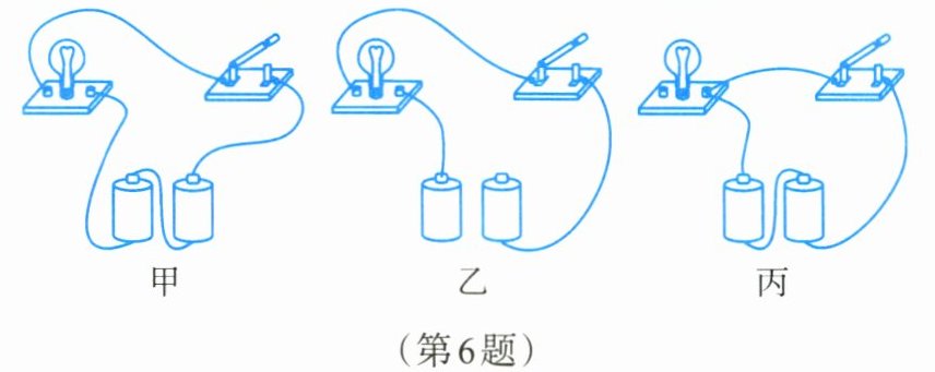 6. 如图所示的电路中,当闭合开关后,其中属于通路的是______,属于短路的是______,属于开路的是______。