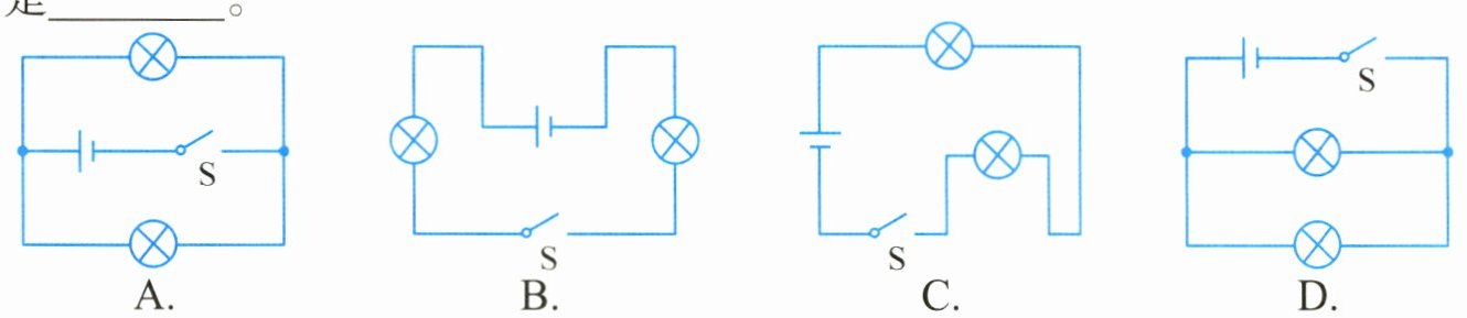 8. 如图所示,闭合开关S后,属于串联电路的是______,属于并联电路的是______。