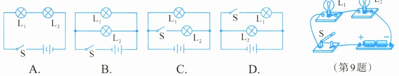 9. 下列选项中,与实物图相对应的电路图是( )。