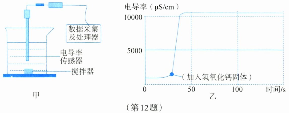 ②把电导率传感器插入烧杯中适当位置,同时“数据采集及处理器”工作,如图甲所示。