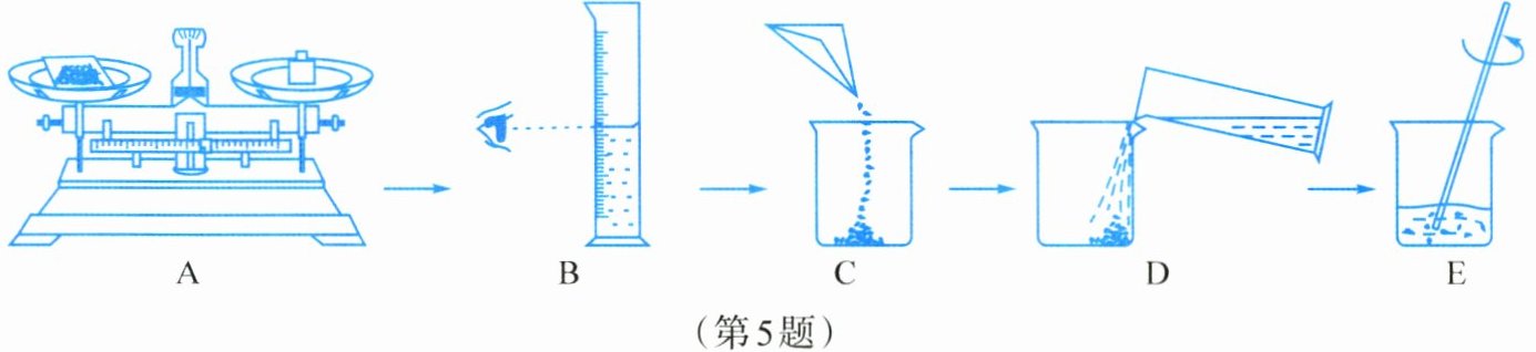 5.下图是某同学配制50g质量分数为15%的蔗糖溶液的操作过程示意图。试回答下列问题。
