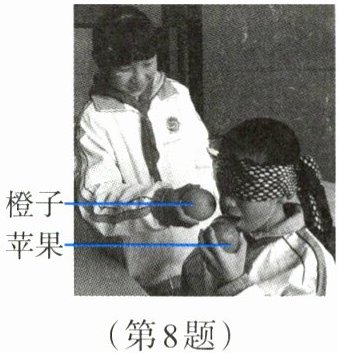 8. 图中的同学在嗅橙子的同时吃苹果,会产生( )。