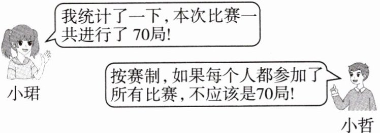 9. 一次围棋比赛采用单循环赛制(每名选手与其他选手各比赛 1 局),且参赛者少于 15 人. 小珺和小哲对比赛的总局数进行统计,对话如下:
