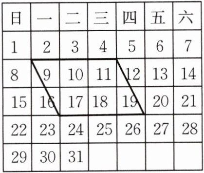 6. 如图,这是某月的月历,甲同学用一个平行四边形框,框出 6 个数字,其中最小数与最大数的积是 144,则最大数是