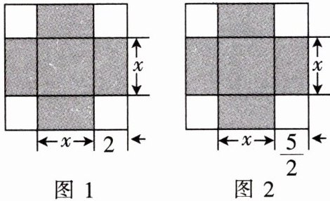 2. 在《代数学》中记载了求方程$x^{2}+8x= 33$正数解的几何方法:如图$1$,先构造一个面积为$x^{2}$的正方形,再以正方形的边为一边向外构造四个面积为$2x$的矩形,得到大正方形的面积为$33+16= 49$,则该方程的正数解为$7-4= 3$。小明尝试用此方法解关于$x的方程x^{2}+10x+c= 0$时,构造出如图$2$所示的正方形。已知图$2中阴影部分的面积和为39$,则该方程的正数解为(