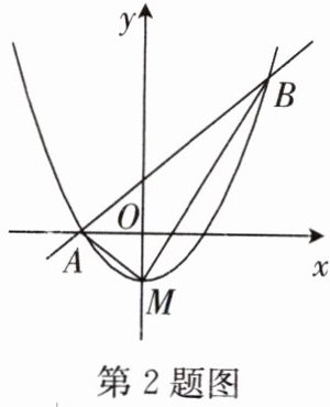 2. 如图,抛物线的顶点 $ M $ 在 $ y $ 轴上,抛物线与直线 $ y = x + 1 $ 相交于 $ A $,$ B $ 两点,且点 $ A $ 在 $ x $ 轴上,点 $ B $ 的横坐标为 $ 2 $,那么抛物线的函数解析式为