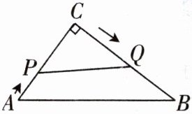6. 如图,在 $\triangle ABC$ 中,$\angle C = 90^{\circ}$,$AB = 10\ cm$,$BC = 8\ cm$,点 $P$ 从点 $A$ 出发,沿 $AC$ 向点 $C$ 以 $1\ cm/s$ 的速度运动,同时点 $Q$ 从点 $C$ 出发,沿 $CB$ 向点 $B$ 以 $2\ cm/s$ 的速度运动(点 $Q$ 运动到点 $B$ 时,两点同时停止运动),在运动过程中,四边形 $PABQ$ 的面积的最小值为(