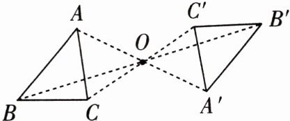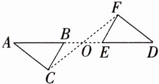 变式演练 如图,$\triangle ABC$ 与 $\triangle DEF$ 关于点 $O$ 成中心对称,则 $AB = DE$,$BC//$