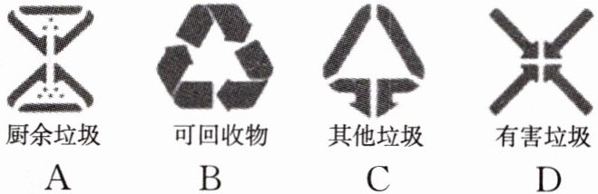 2. 下列四幅图片上呈现的是垃圾类型及标识图案,其中标识图案是中心对称图形的是(