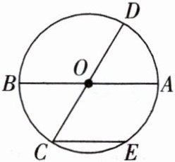 2. 如图,已知$AB和CD是\odot O$的两条直径,弦$CE// AB$,$\overset{\frown}{CE}所对的圆心角为40^{\circ}$,求$\angle BOD$的度数.