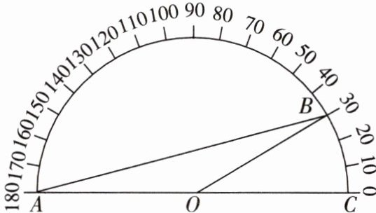2. 如图,把一个量角器放在$∠BAC$的上面,请你根据量角器的读数判断$∠BAC$的度数是(