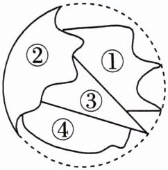 2. 小明不慎把家里的圆形玻璃打碎了,其中四块碎片如图所示,为配到与原来大小一样的圆形玻璃,小明应该带到商店去的一块玻璃碎片是(