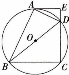 1. 如图,四边形 $ ABCD $ 内接于 $ \odot O $,$ BD $ 是 $ \odot O $ 的直径,过点 $ A $ 作 $ AE \perp CD $,交 $ CD $ 的延长线于点 $ E $,$ DA $ 平分 $ \angle BDE $。