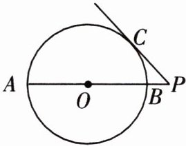 2. 如图,$ AB $ 是 $ \odot O $ 的直径,$ P $ 是 $ AB $ 延长线上的一点,$ PC $ 切 $ \odot O $ 于点 $ C $,$ PC = 3 $,$ PB = 1 $,求 $ \odot O $ 的半径。