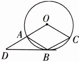 2. 如图,菱形 $ OABC $ 的顶点 $ A $,$ B $,$ C $ 在 $ \odot O $ 上,过点 $ B $ 作 $ \odot O $ 的切线交 $ OA $ 的延长线于点 $ D $。若 $ \odot O $ 的半径为 1,则 $ BD $ 的长为