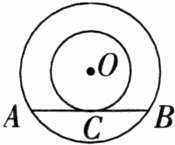 2. 如图,两个同心圆,大圆的半径为 5,小圆的半径为 3,大圆的弦 $ AB $ 切小圆于点 $ C $,求 $ AB $ 的长。
