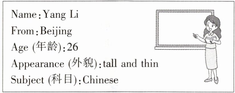 二、Read and choose. 下面是杨老师的信息卡,根据信息卡内容,选择正确的答案。