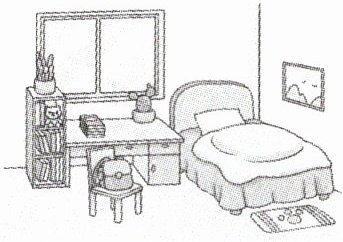1. Yes, it is. 2. There is a big bed, a nice photo, a computer, a desk...