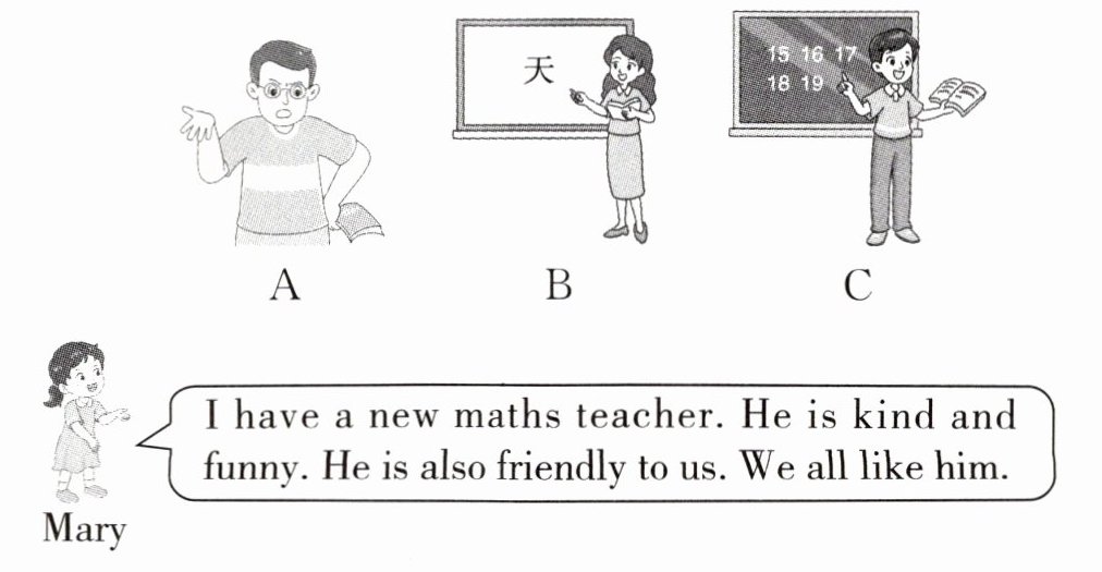 Mary:I have a new maths teacher. He is kind and funny. He is also friendly to us. We all like him.