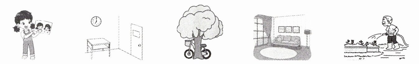 1. bed 2. clock 3. plant 4. bike 5. water bottle