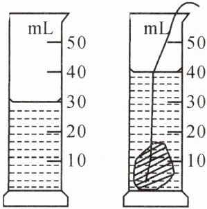 例2 甲、乙两位同学分别用量筒测量一个石块的体积。甲同学的做法是在量筒里注入适量的水,记下水的体积$V_{1}$,然后轻轻放入石块,使量筒里的水完全浸没石块,记下此时水及石块的体积$V_{2}$,计算石块的体积为$V_{2}-V_{1}$。乙同学的做法则是先将石块置于量筒中,同时往量筒中注入水,使水完全浸没石块后记下水的体积$V_{1}$,然后取出石块,记下取出石块后水的体积$V_{2}$,计算石块的体积为$V_{1}-V_{2}$。
