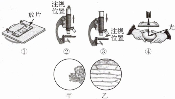 (3)完成以上正确操作后,小科先后在显微镜观察视野中看到图甲、乙两个物像,从物像甲到物像乙,小科操作的具体过程是______。