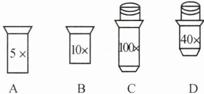 (2)该同学在用某光学显微镜观察猪血涂片时,发现该光学显微镜的镜盒里只有如下图所示的4个镜头。为了能够在视野中看到较多的细胞,宜选用图中的镜头A和镜头______进行观察。