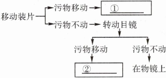 (1)某同学在使用显微镜时,经常发现视野中会有“污物”出现。该同学为了能正确快速判断视野中“污物”可能存在的位置,画出了如下图所示的思维导图。