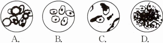例2 下图是四位同学在显微镜下观察人体口腔上皮细胞时,出现在视野中的物像。其中最可能是因为盖盖玻片时操作不当而形成的图像是( )