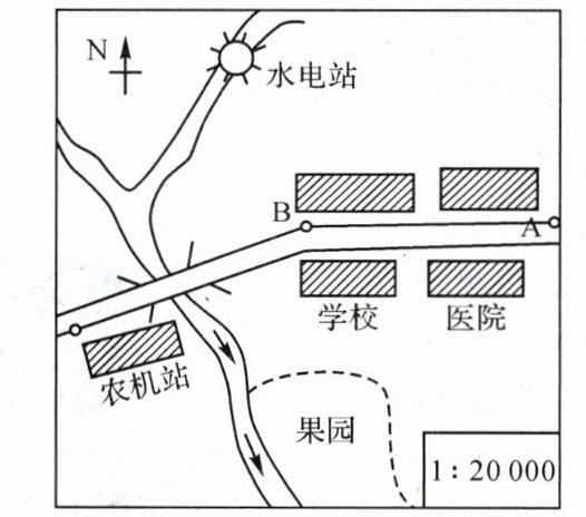 (3)水电站位于农机站的______方向,如果水电站到农机站的图上距离为5cm,那么水电站到农机站的直线距离为______km。从A点到B点的图上距离为3cm,那么A点到B点直线距离为______km。