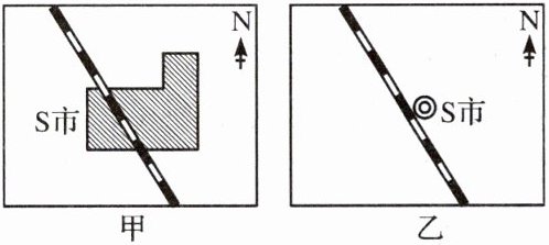 C.甲图中的S市城区面积比乙图大