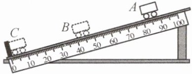 把小车放在斜面顶端,金属片放在斜面低端,用刻度尺测量小车要通过的路程$s_{AC}$。