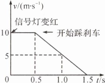 巩固训练1 汽车在公路上以 10m/s 的速度匀速直线前进,驾驶员发现前方路口信号灯转为红灯,经 0.5s 的反应时间后,开始踩刹车。汽车车速 v 随时间 t 变化关系如图所示。下列叙述正确的是( )