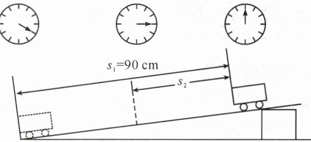 例3 一小组的同学们在“探究速度的变化”的实验中,所用秒表每格为 1s。小车从斜面顶端到底端的路程是 90cm。如图所示,