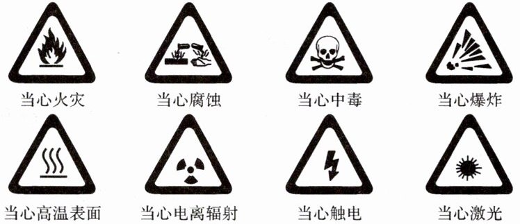 当心火灾:表示该区域存在易燃物质,需注意防火。