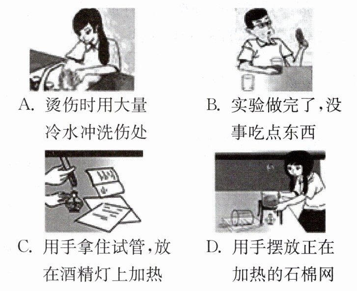 |B|被热的试管烫伤|用大量冷水冲洗|