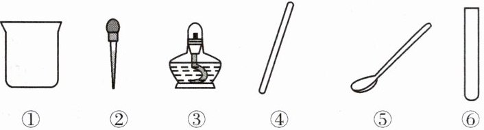 12. 下列仪器中,作为热源用来加热的是______,取用少量固体药品的是______,滴加少量液体的是______,用作少量物体反应的容器的是______,常用来搅拌的是______(填序号)。