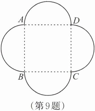 9. 如图所示,某花坛由四个半圆和一个正方形组成,已知正方形的面积为$16m^{2}$,求该花坛的周长。($\pi$取3.1415,计算结果精确到0.01)