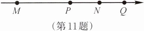 11.如图所示,四个有理数在数轴上的对应点分别为M,P,N,Q,若点M,N表示的有理数互为相反数,则图中表示绝对值最小的数的点是点______。