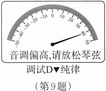 9.古筝是中国独特的民族乐器之一,为了保持音准,弹奏者常使用调音器对每根琴弦进行调音。如图所示为某古筝调音器软件的界面,指针指向40表示音调偏高,需放松琴弦。下列指针指向的数字中,表示需拧紧琴弦且最接近标准音(指针指在0处为标准音)的是 ( )