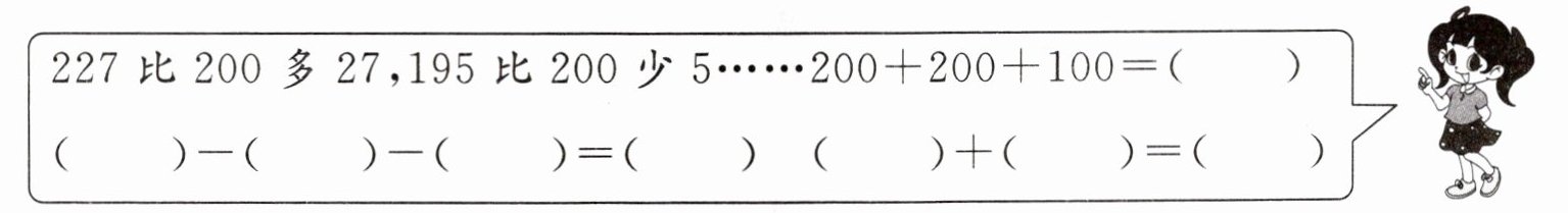 227比200多27,195比200少5……200+200+100= (