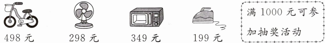 (1)妈妈要买一辆自行车和一台风扇,带(600 700 800)元最合适。(圈一圈)
