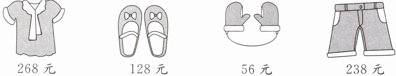(1)妈妈买了一件上衣和一副手套,付给售货员400元,应找回多少元?