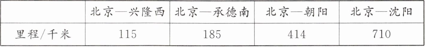 2. 下面是北京到沈阳沿线车站的火车里程表。
