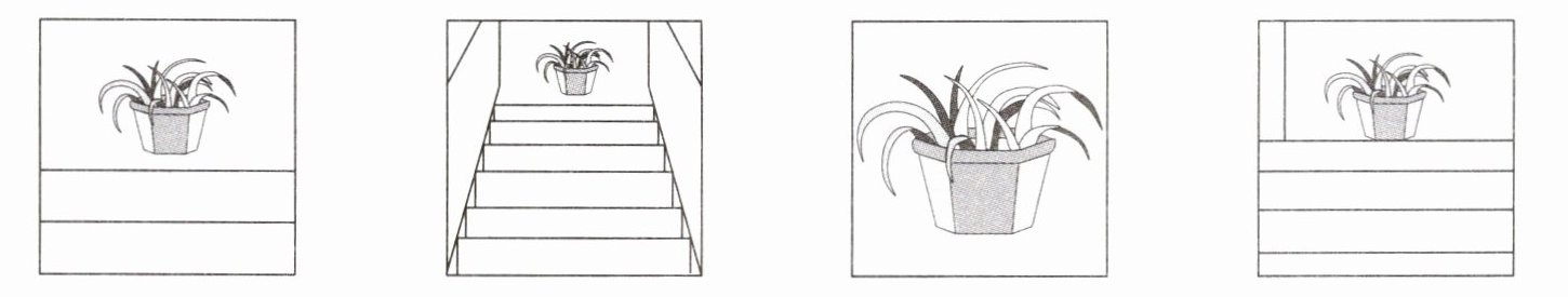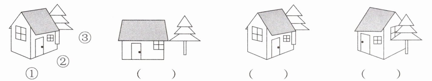 1. 如图,摄影师分别在①②③哪个位置拍到的?填上对应的序号。