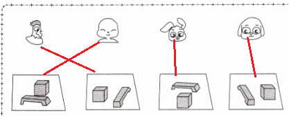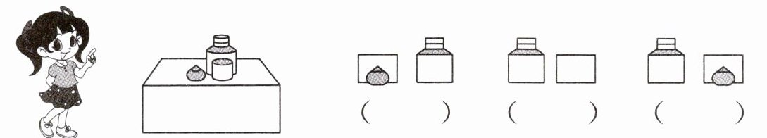 3. 笑笑看到的是哪幅图?在正确答案下面的括号里画“√”,并说一说你是怎么判断的。
