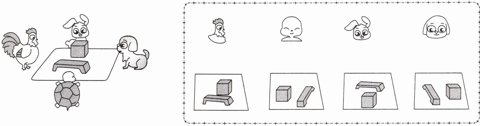 1. 下面四幅图分别是谁看到的?连一连。