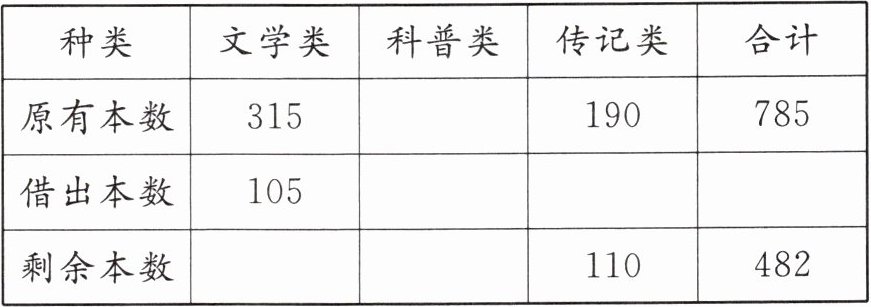 )。| 种类 | 文学类 | 科普类 | 传记类 | 合计 |